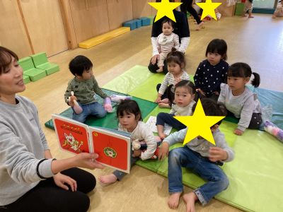 子どもたちも一緒に「ぴ~か~ぶ~!」と英語で言いながら絵本を楽しみました☆