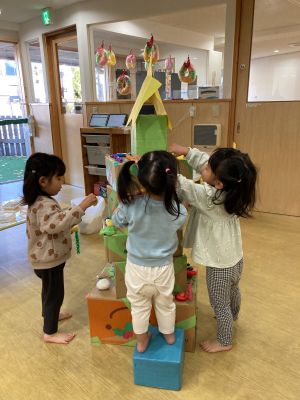 11月に入ったころからおうちにクリスマスツリーを飾ったご家庭もあり、クリスマスをとても楽しみにしていた子どもたち☆